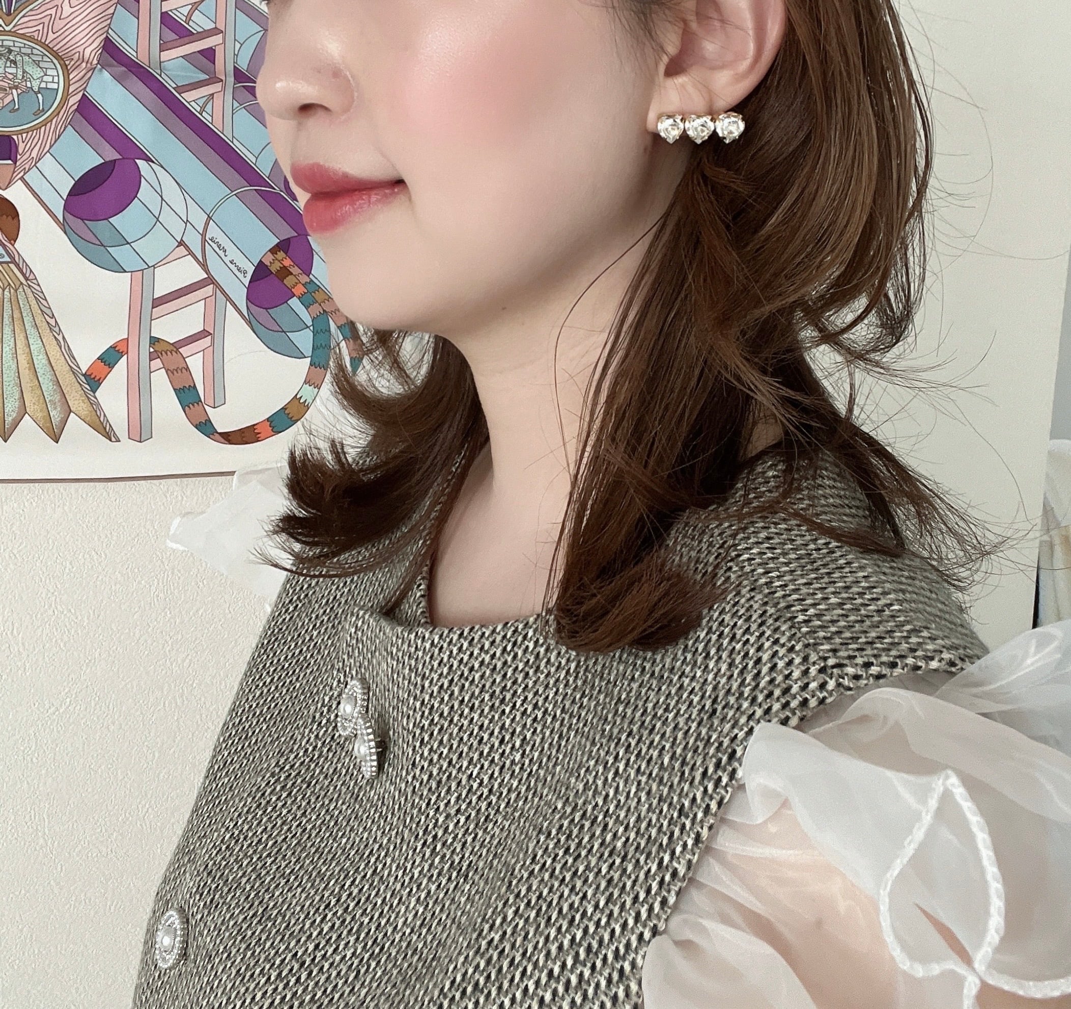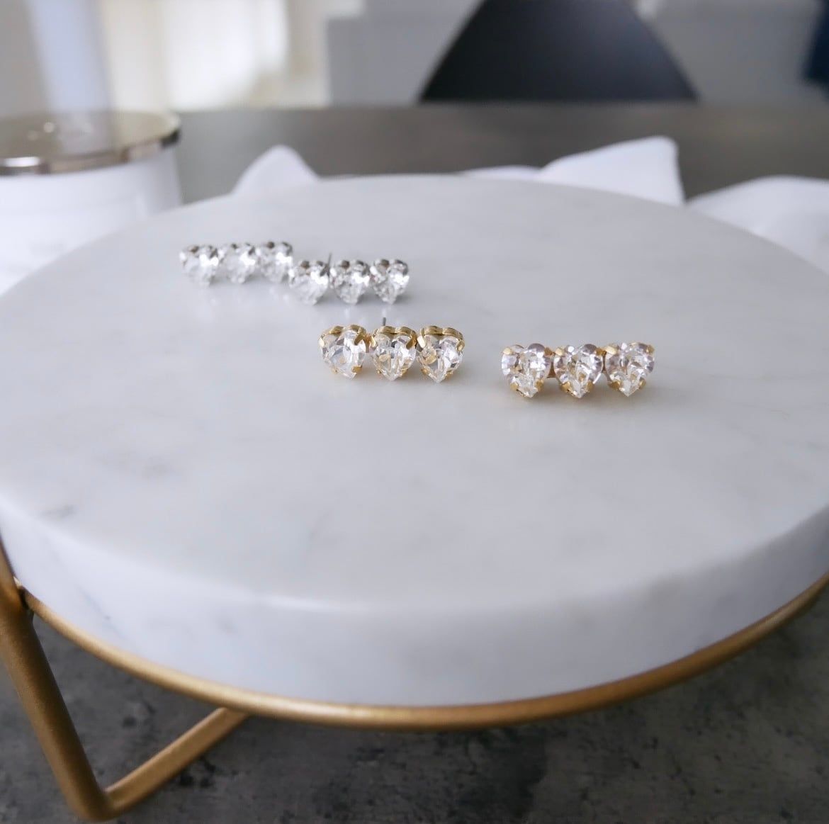 お客様から商品化のリクエストをたくさんいただいた、ハートスワロフスキーの3連ピアス。